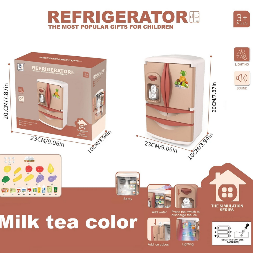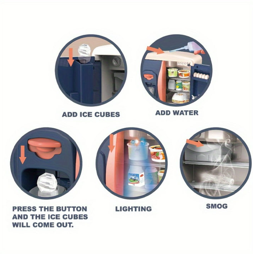 Frigiderul de jucărie interactiv este o alegere perfectă pentru completarea oricărui set de bucătărie de jucărie. Acest mini-frigider realist include simularea producerii cubului de gheata, lumini si sunet oferind o experiență captivantă și educativă. Copiii vor fi încântați să-l folosească în jocurile lor de rol, imitând activitățile din viața reală.