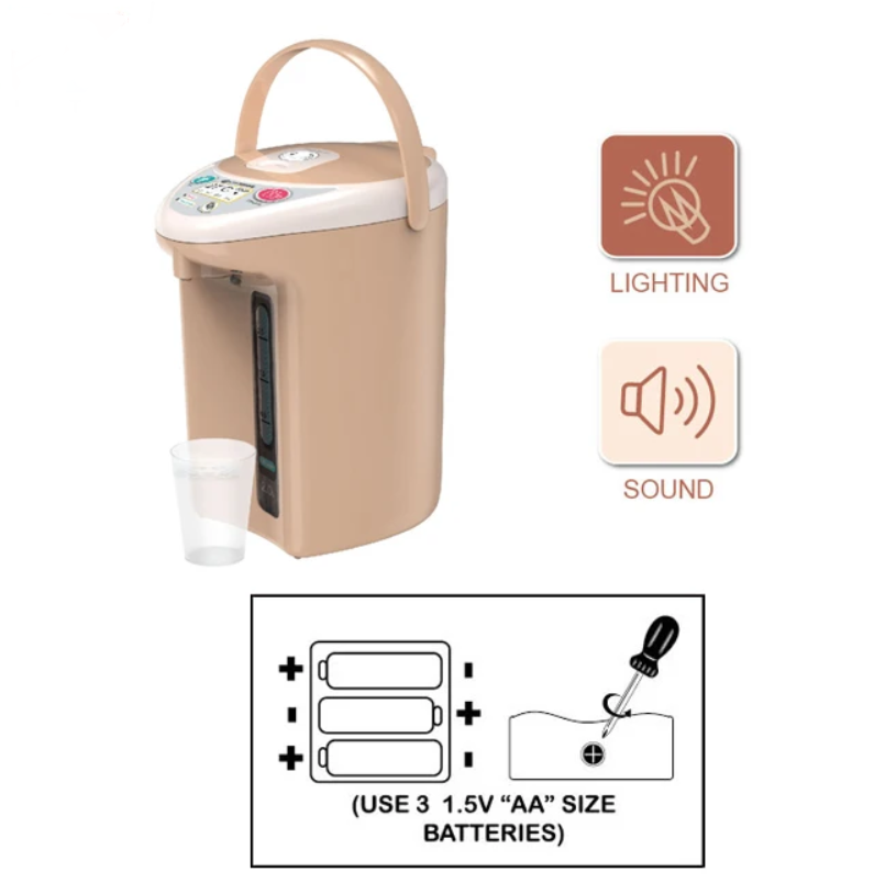 Termosul este echipat cu sunete realiste și lumini colorate, care fac jocul mai distractiv și interactiv.