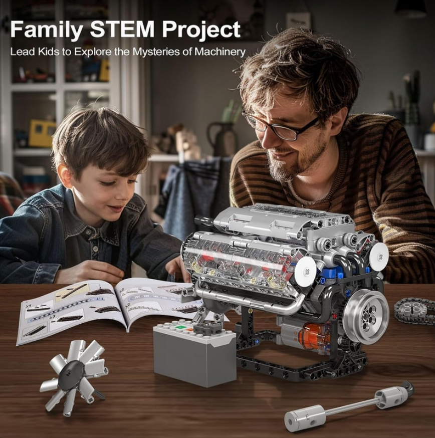 Transformă joaca într-o lecție captivantă de știință. Comandă Motorul Clasic V8 – Kit STEM DIY și oferă copiilor o experiență educativă completă.