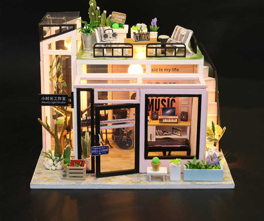 Casa miniaturală DIY este un set complet pentru asamblare proprie, ideal pentru copii peste 9 ani, adolescenți și adulți pasionați de proiecte creative. Modelul are patru fețe, este semi-deschis și permite vizualizarea detaliată a interiorului după finalizare. Cu un grad de dificultate 5 din 7, acest kit oferă o experiență captivantă și satisfacția realizării unui obiect decorativ unic.